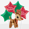 Bring festive charm to your celebrations with our Standing Reindeer Classic Christmas Balloons! This adorable set includes two classic red “Merry Christmas” star balloons, two green stars, and a gorgeously cute air-filled reindeer balloon that stands proudly on its own.